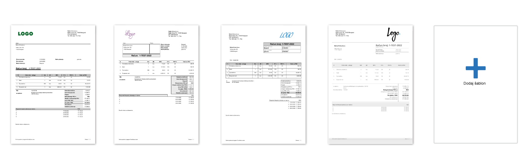 Štampanje prodajnih dokumenata moguće je 100% personalizovati. Ako ne možete pronaći pravi šablon u našoj galeriji šablona, moćete kreirati sopstveni šablon koristeći HTML ili Word.