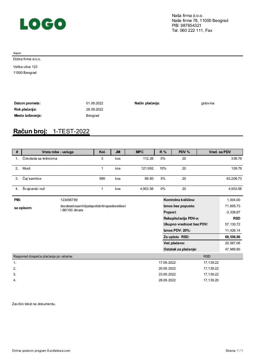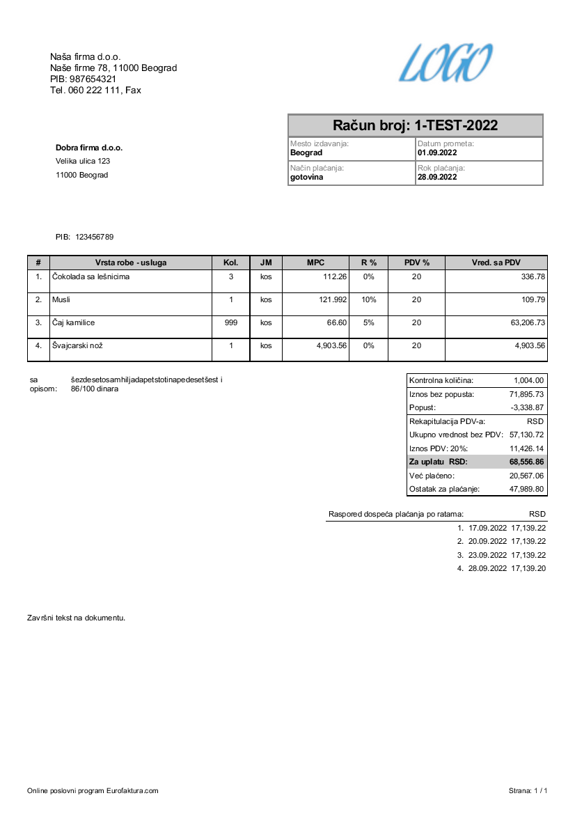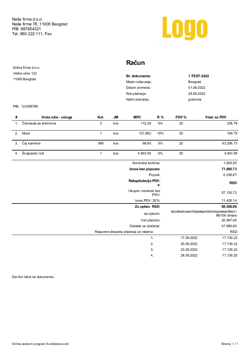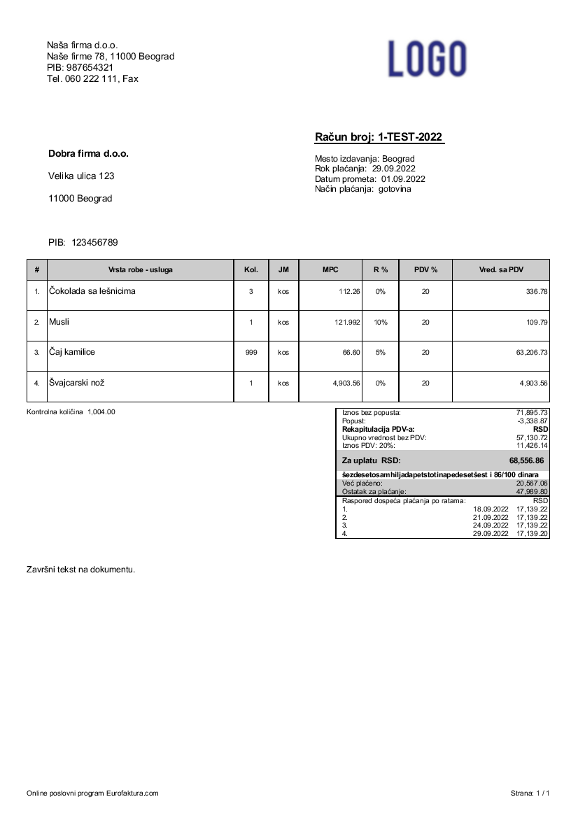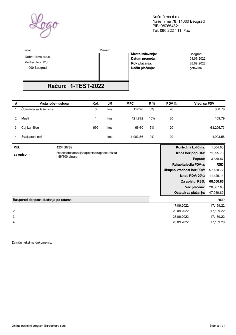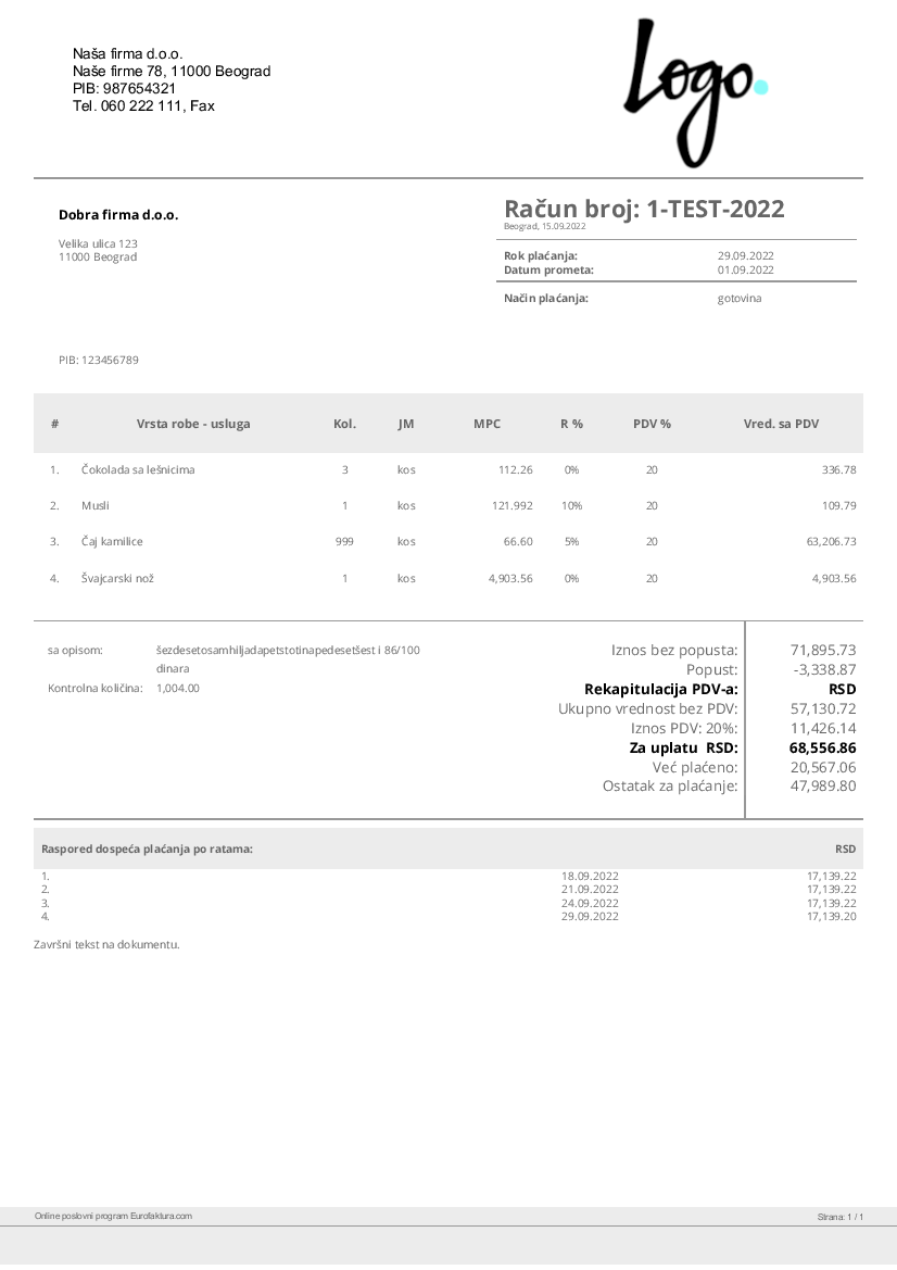 Vaše ponude i fakture će imati profesionalni izgled te će biti izdati u skladu sa zakonodavstvom.
